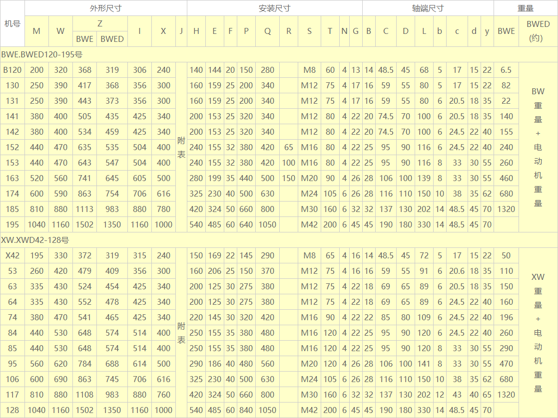 BWE.BWED XW.XWD型( 雙級 )外形及安裝尺寸